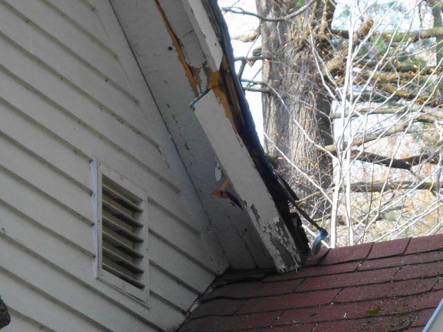 Damage to the edge of the roof - above the door from the kitchen to the deck