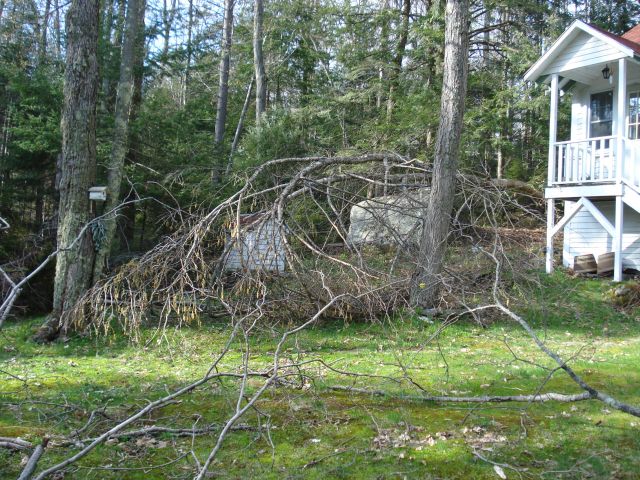 The ice storm brought down at least four trees (or nearly all of what used to be 4 trees).