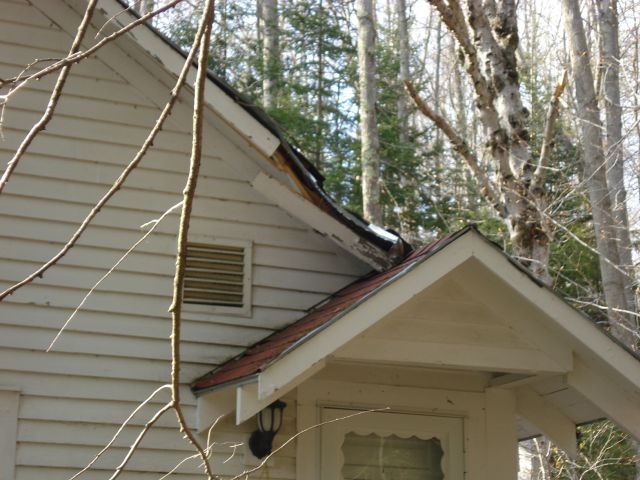 Damage to the edge of the roof - above the door from the kitchen to the deck